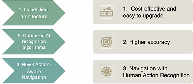 Unique Value: A smart and affordable AI vision service based on cloud and our mobile APP to assist visually impaired people with navigation and recognition in their daily lives.
